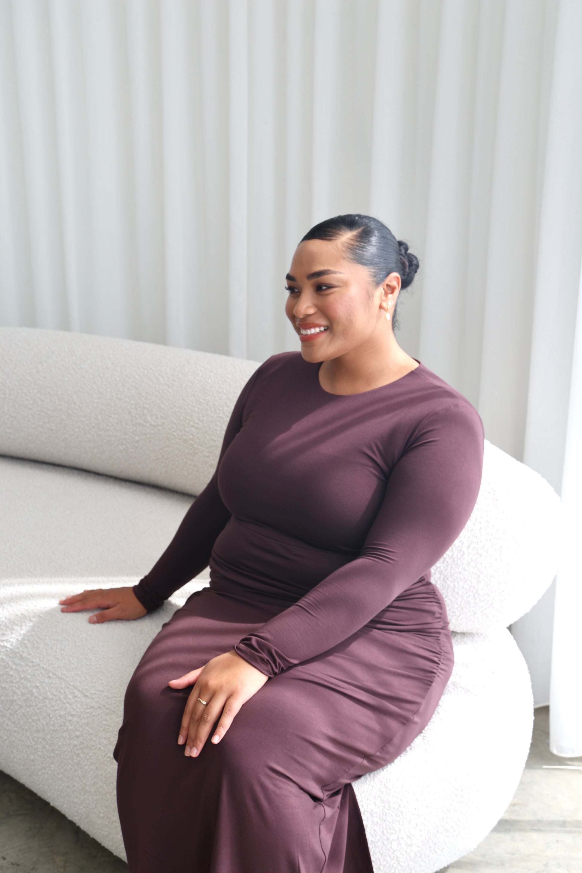 Introducing our Signature Long Sleeve Maxi Dress Vol. 2, an updated version of our much-loved original Signature Bamboo Long Sleeve Maxi Dress. Differences include enhanced stitching with removal of the back seam to allow for EVEN MORE stretch, dress split reinforced with binding to increase longevity of dress EVEN MORE!
